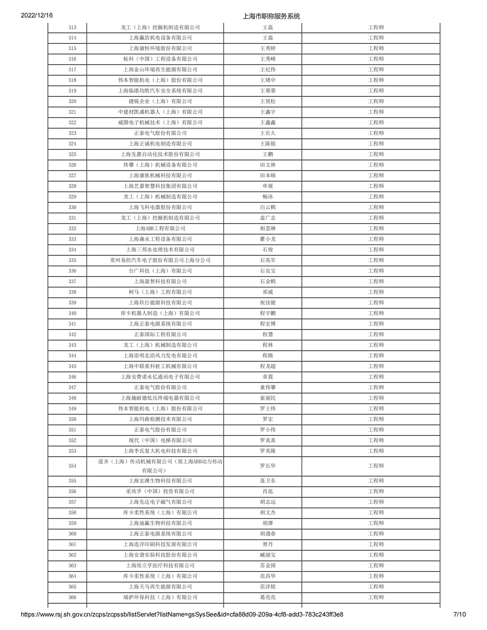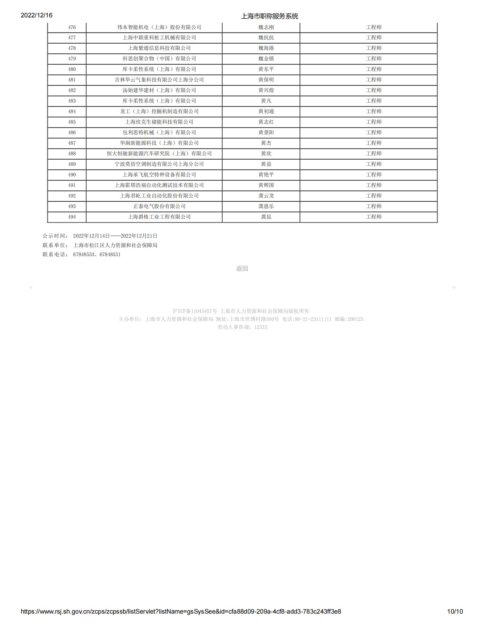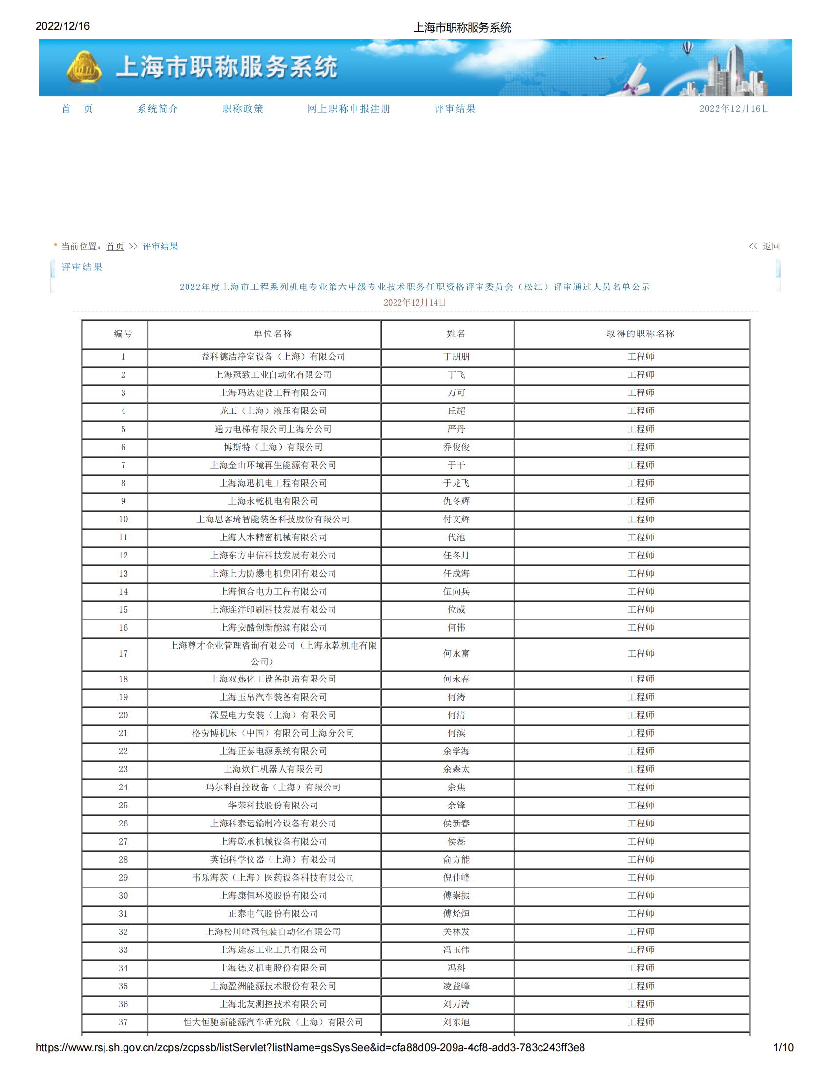 2022年度上海市工程系列機電專業(yè)第六中級專業(yè)技術(shù)職務(wù)任職資格評審委員會(松江)評審?fù)ㄟ^人員名單公示
