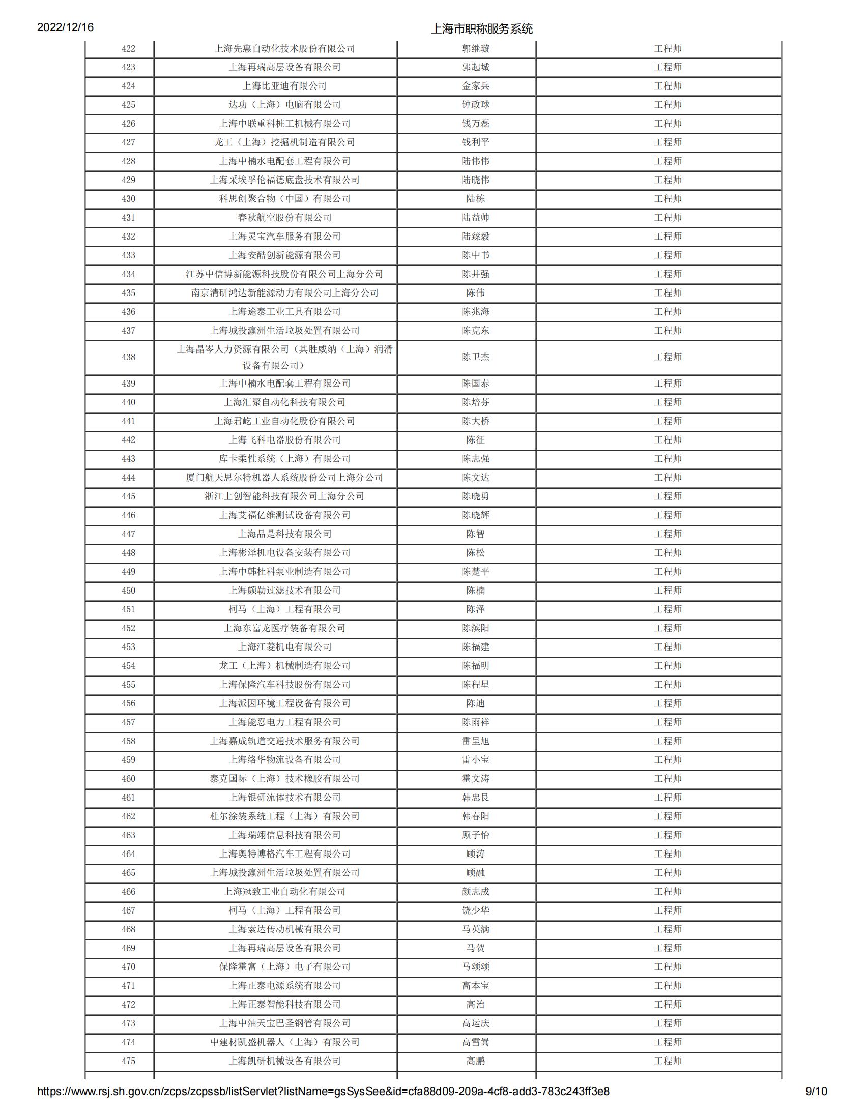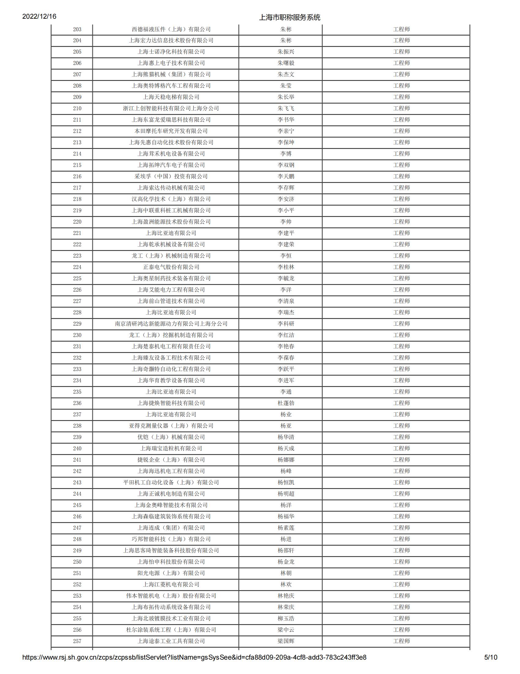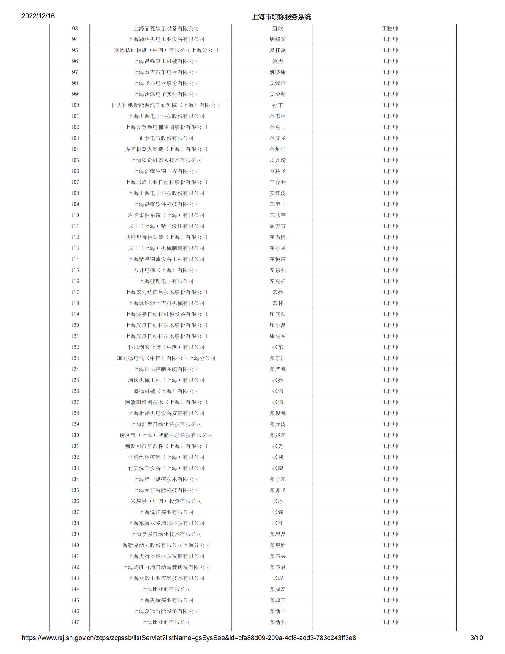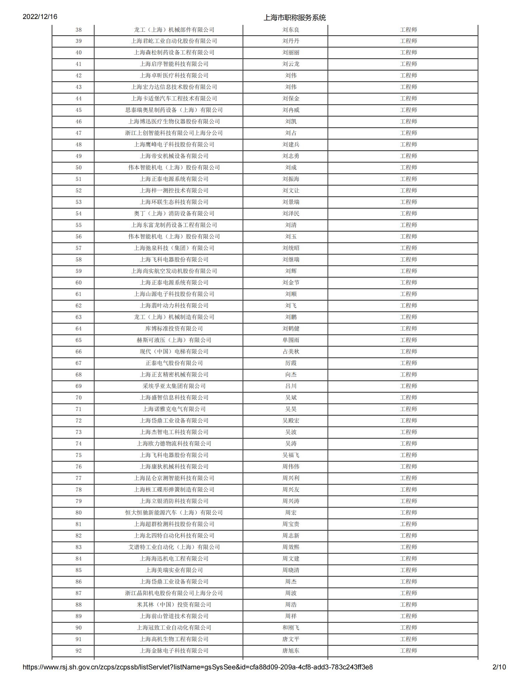 2022年度上海市工程系列機電專業(yè)第六中級專業(yè)技術(shù)職務(wù)任職資格評審委員會(松江)評審?fù)ㄟ^人員名單公示
